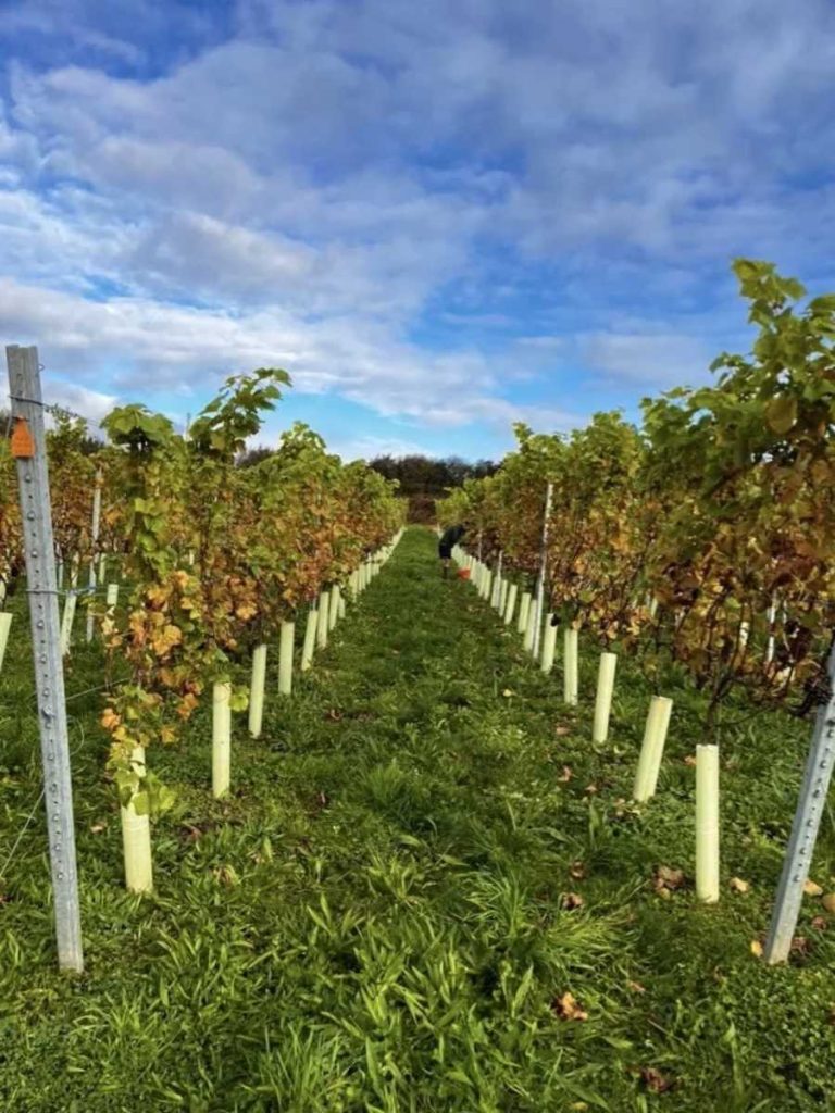 Liz and Peter planted St Hilary Vineyard in 2019 on a gently sloping one-hectare site. The location offers ideal growing conditions, nestled between an apple orchard and a wildflower meadow.