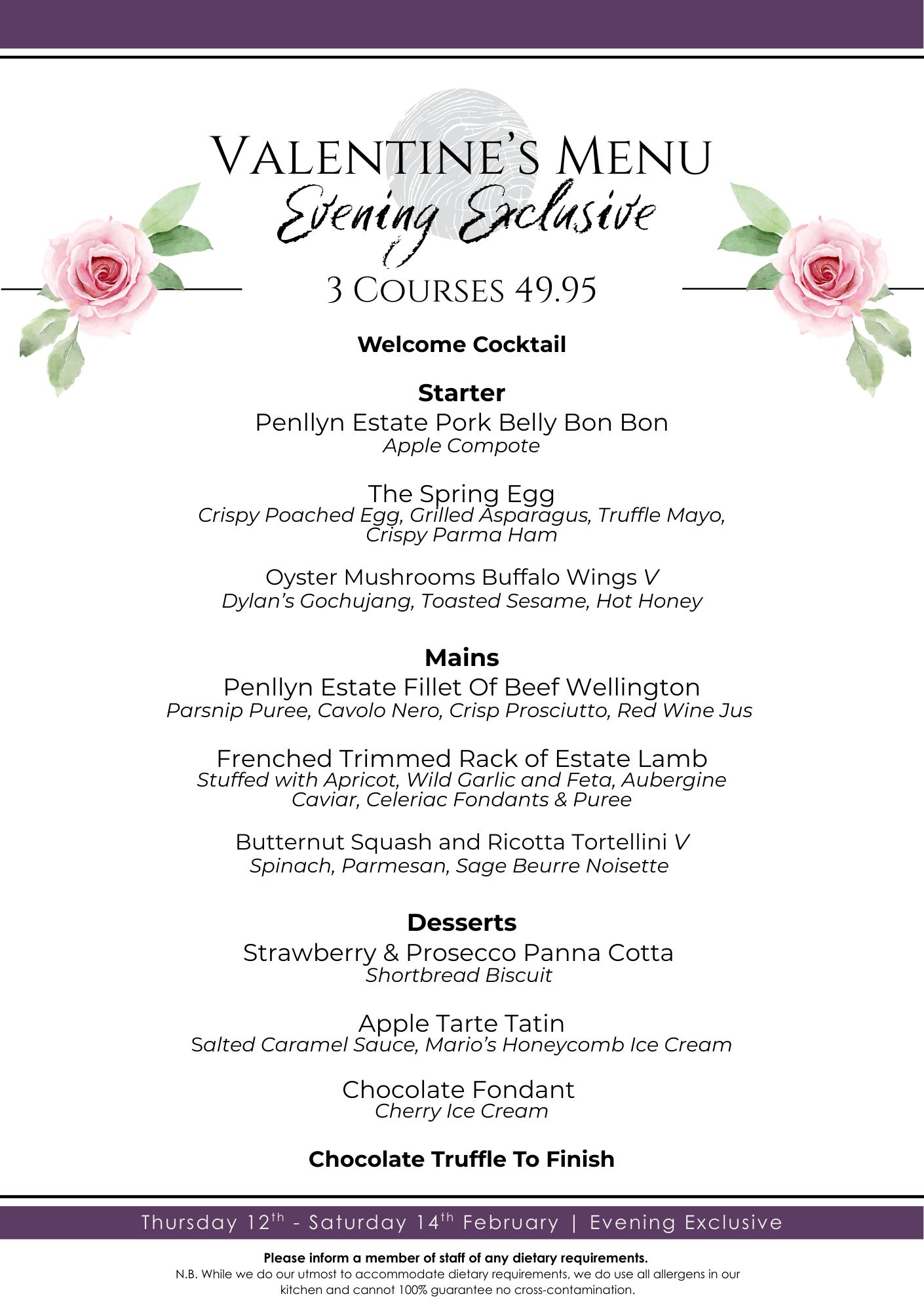 In celebration of St David’s Day, join us for an evening inspired by the Welsh countryside. Showcasing seasonal dishes that highlight the journey from field to plate, with produce sourced close to home, including ingredients from our own farm, Penllyn Estate.